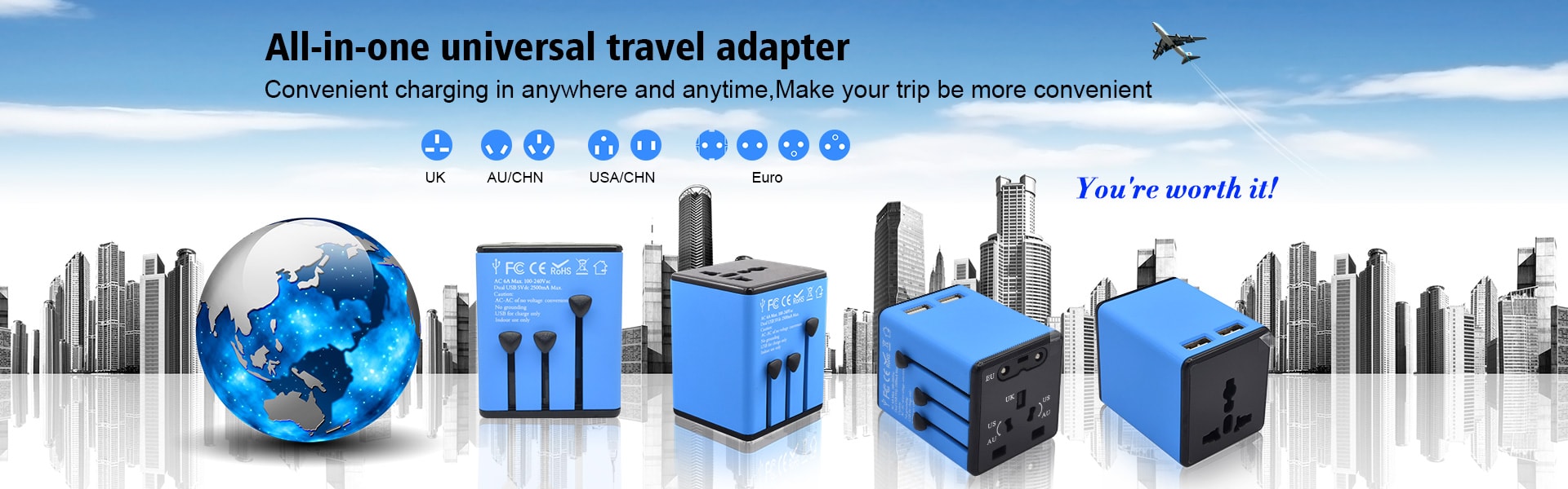 international travel adapter universal with type C fast charge USB port Christmas gift Travel Kit
